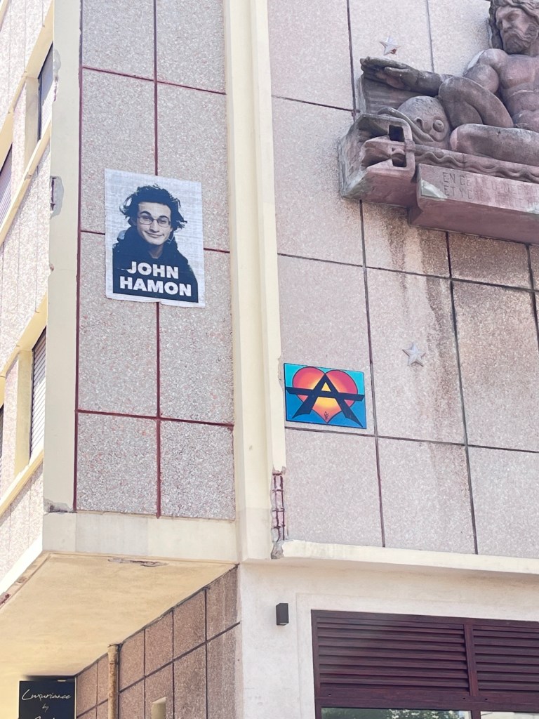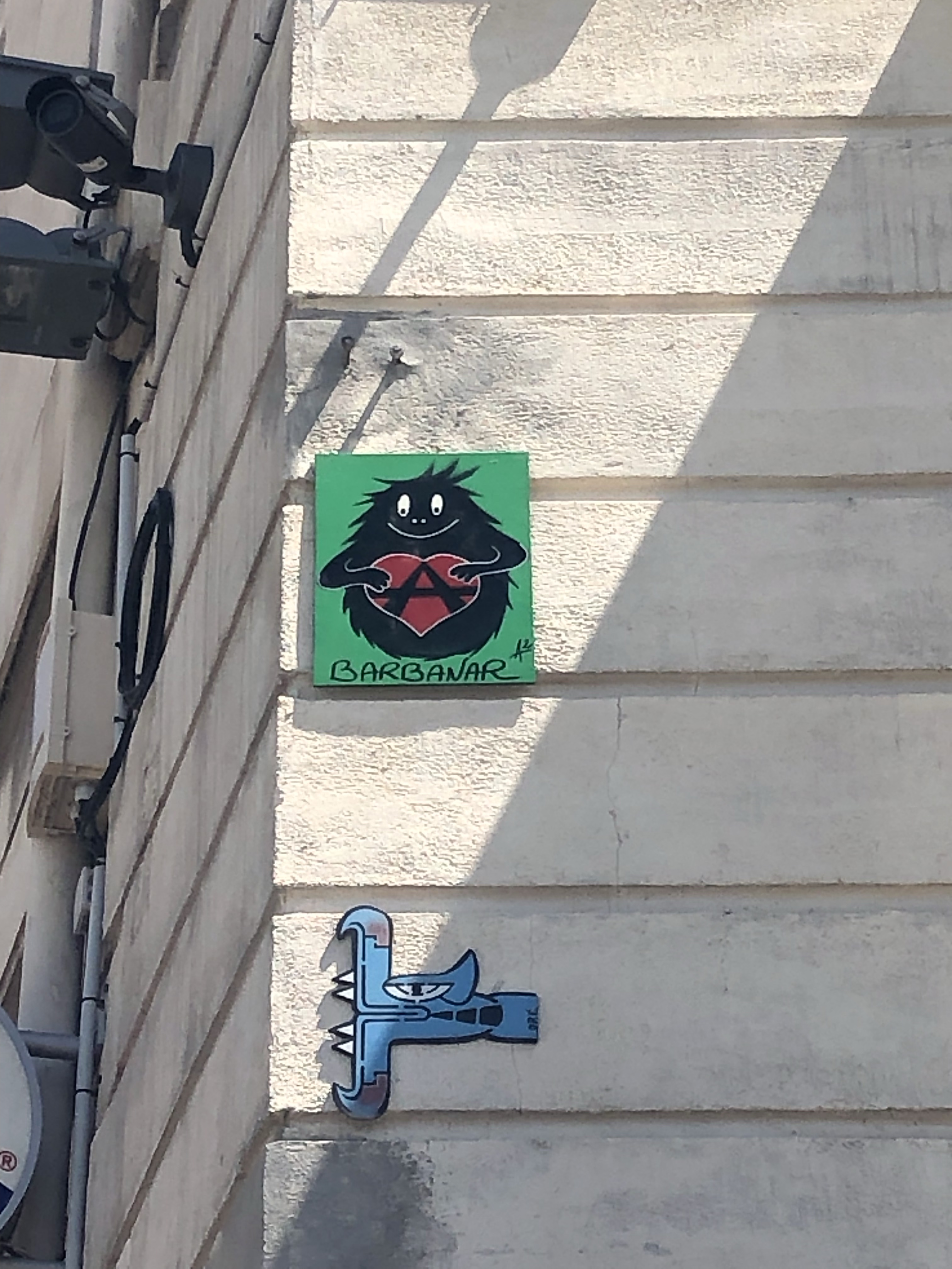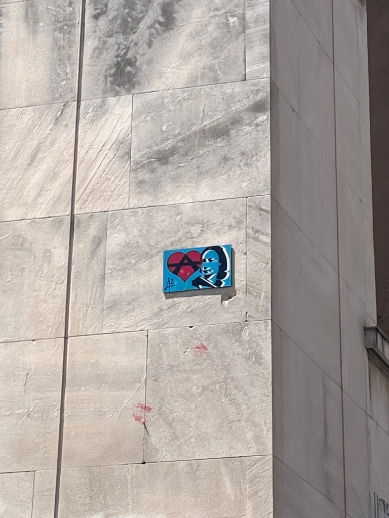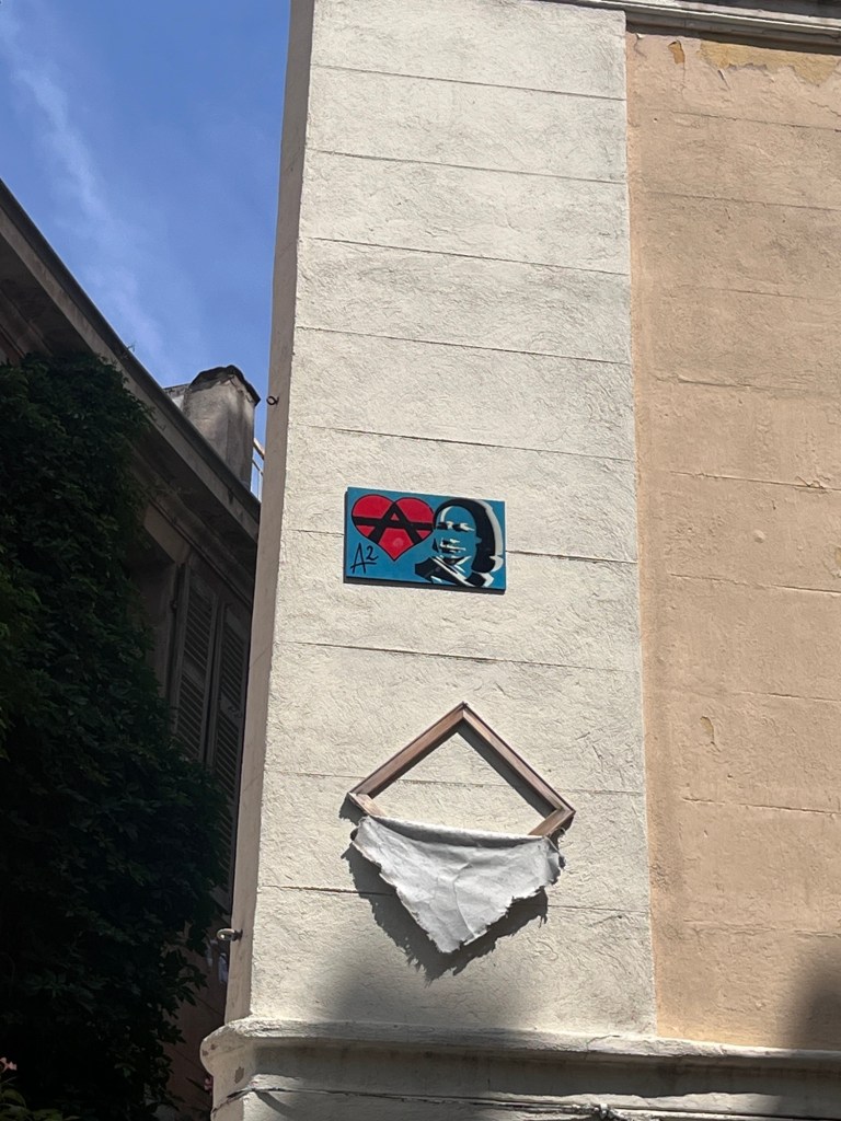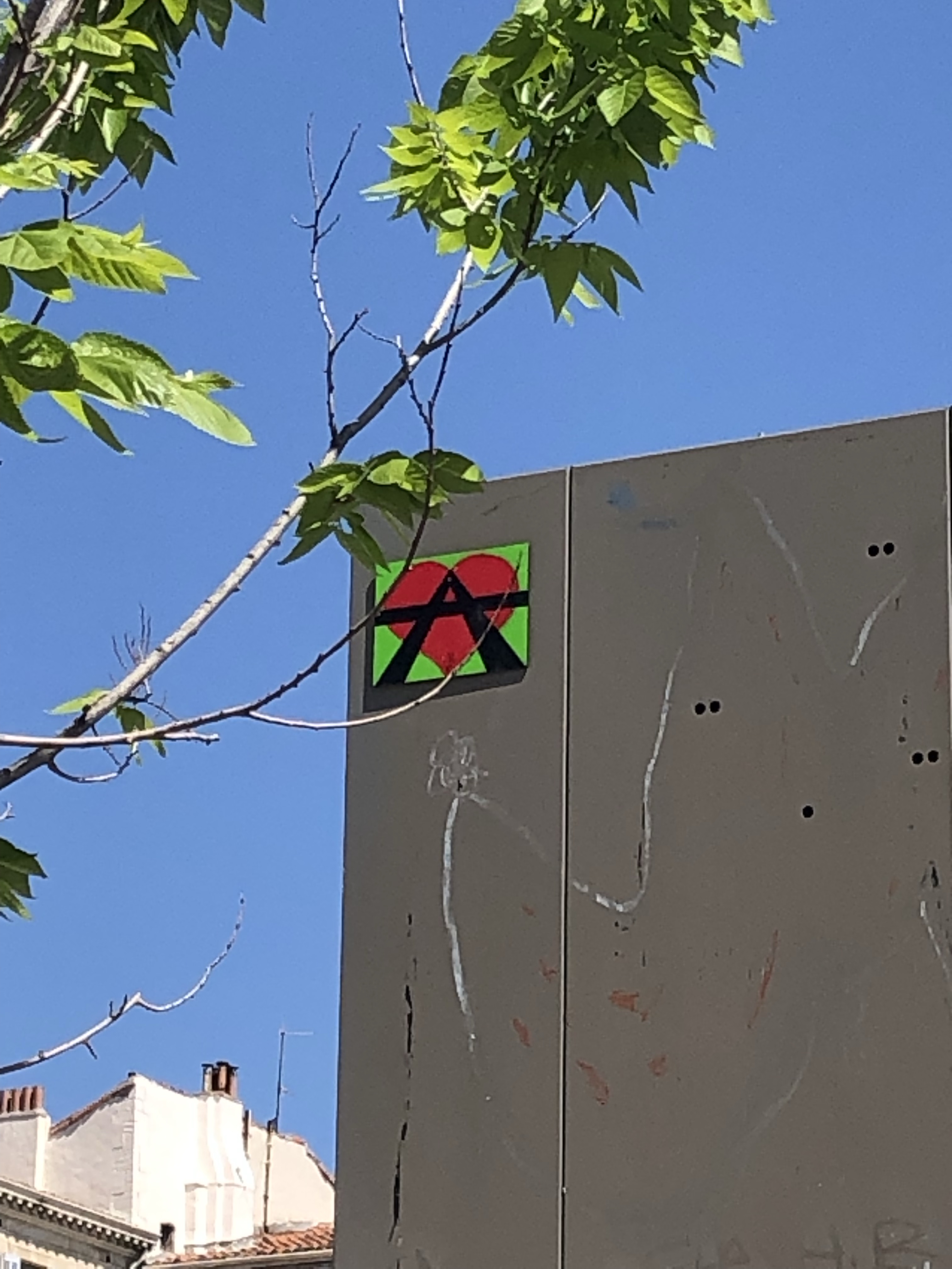 Cœur anarchiste, Barbanar et pochoirs de Louise Michel et Emma Goldman.