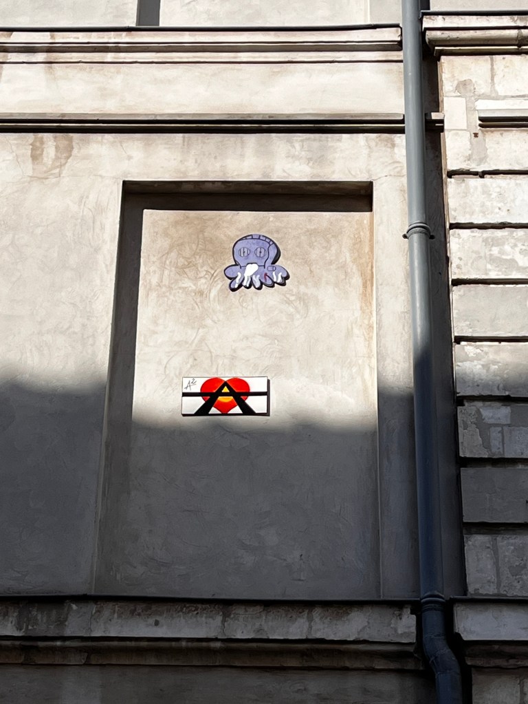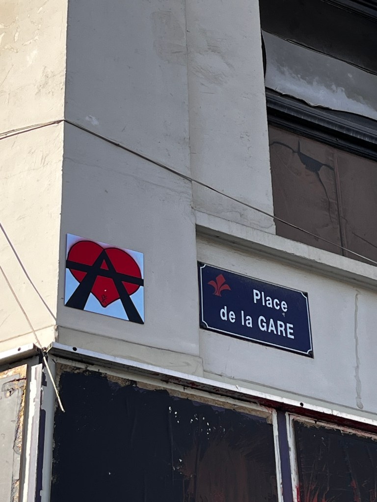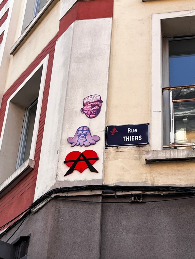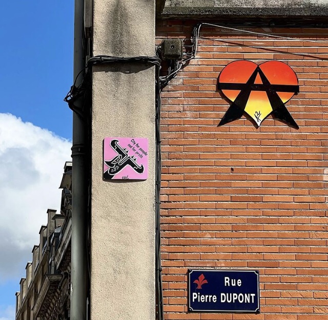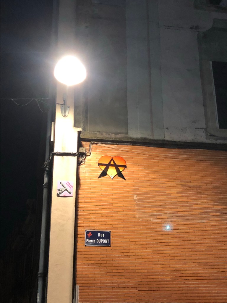 Cœur anarchiste, Barbanar et pochoirs de Louise Michel et Emma Goldman.