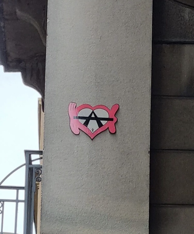 Cœur anarchiste, Barbanar et pochoirs de Louise Michel et Emma Goldman.