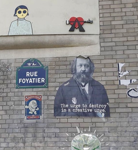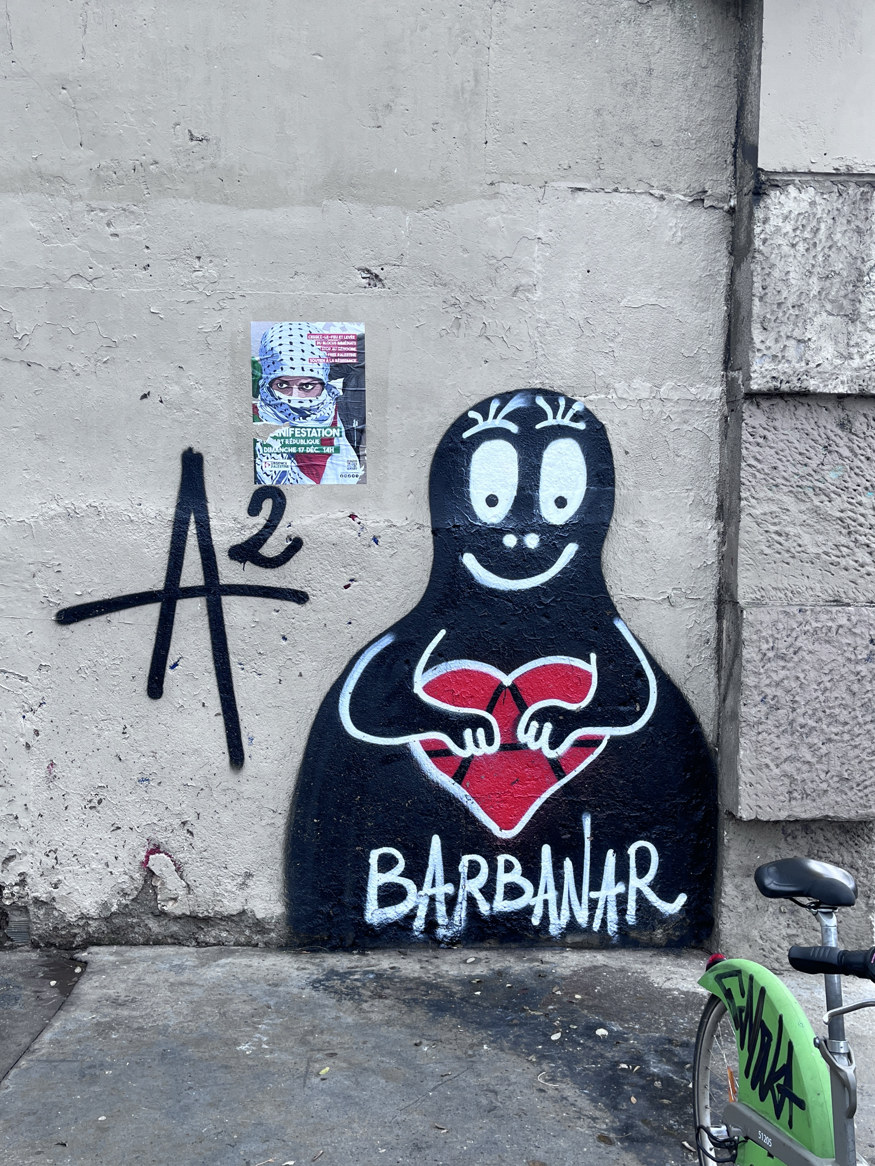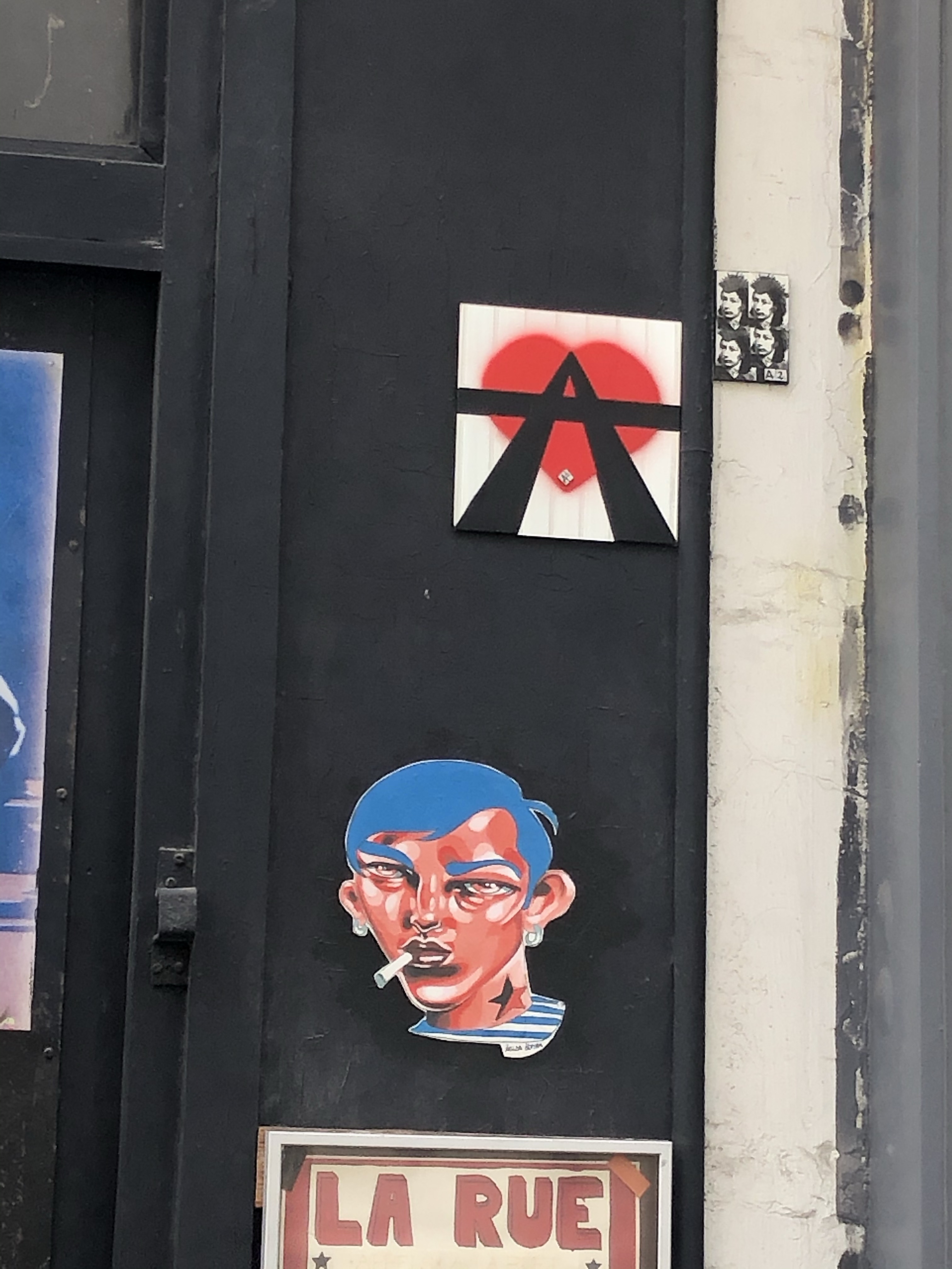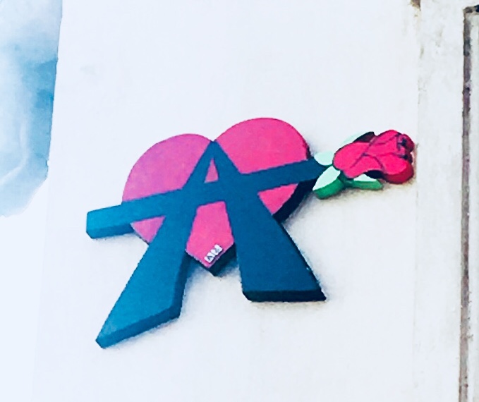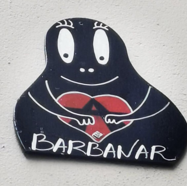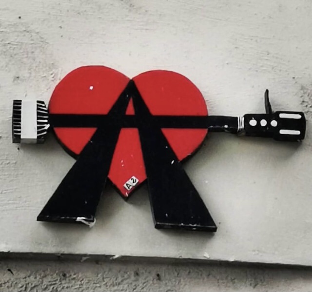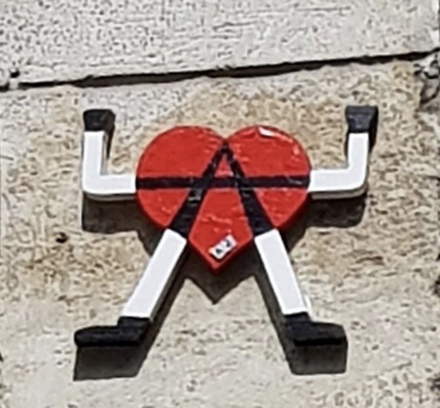 Cœur anarchiste, Barbanar et pochoirs de Louise Michel et Emma Goldman.